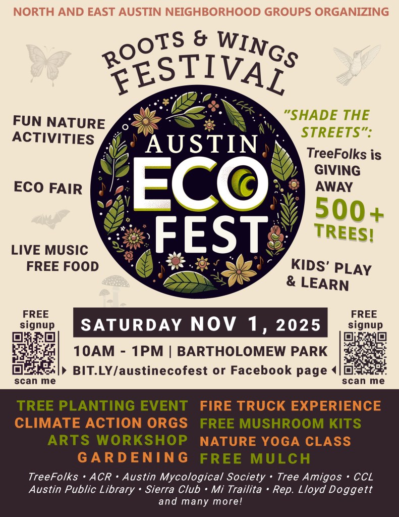 Austin ECO FEST: a Roots & Wings Festival Event is a FREE gardening and tree planting event, climate action fair, eco-expo, a play ‘n learn kids’ event, and so much more… all in ONE place!