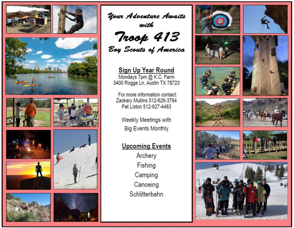 We want to thank the Boy Scouts of America Troop 413 for being a sponsor https://sites.google.com/view/troop-413-austin-tx/home